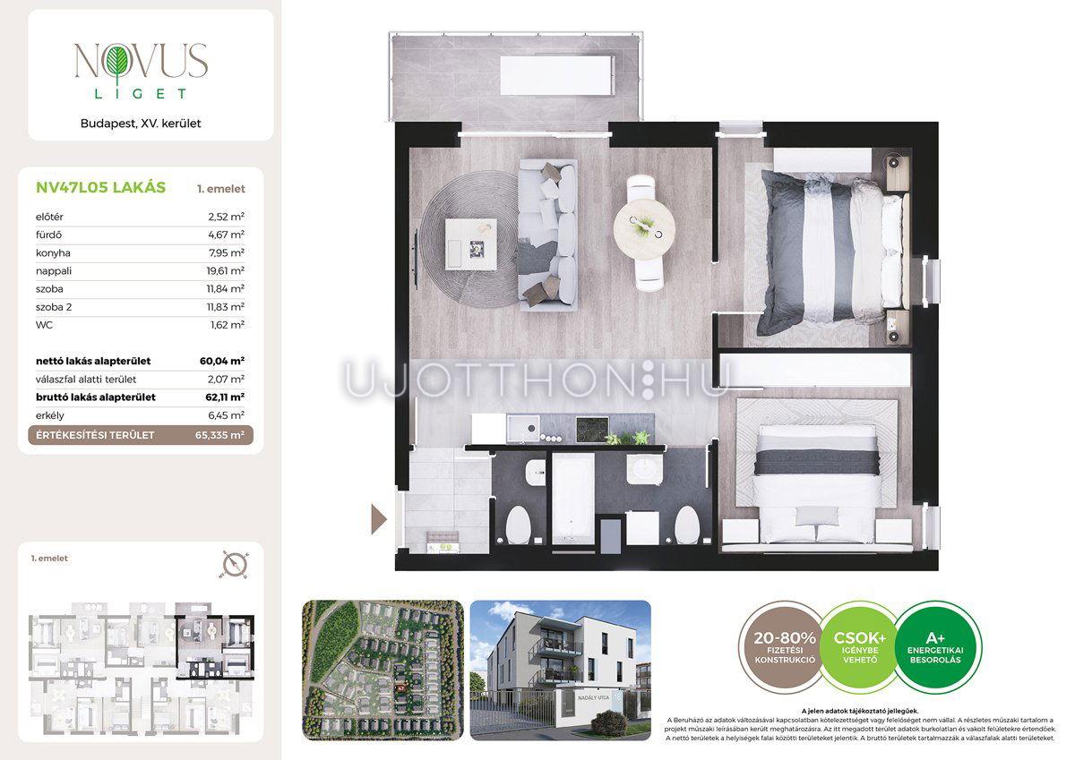 3 szobás 60 m2-es Lakás Novus Liget - Budapest XV. kerület, Rákospalota, Kékszilva utca 2