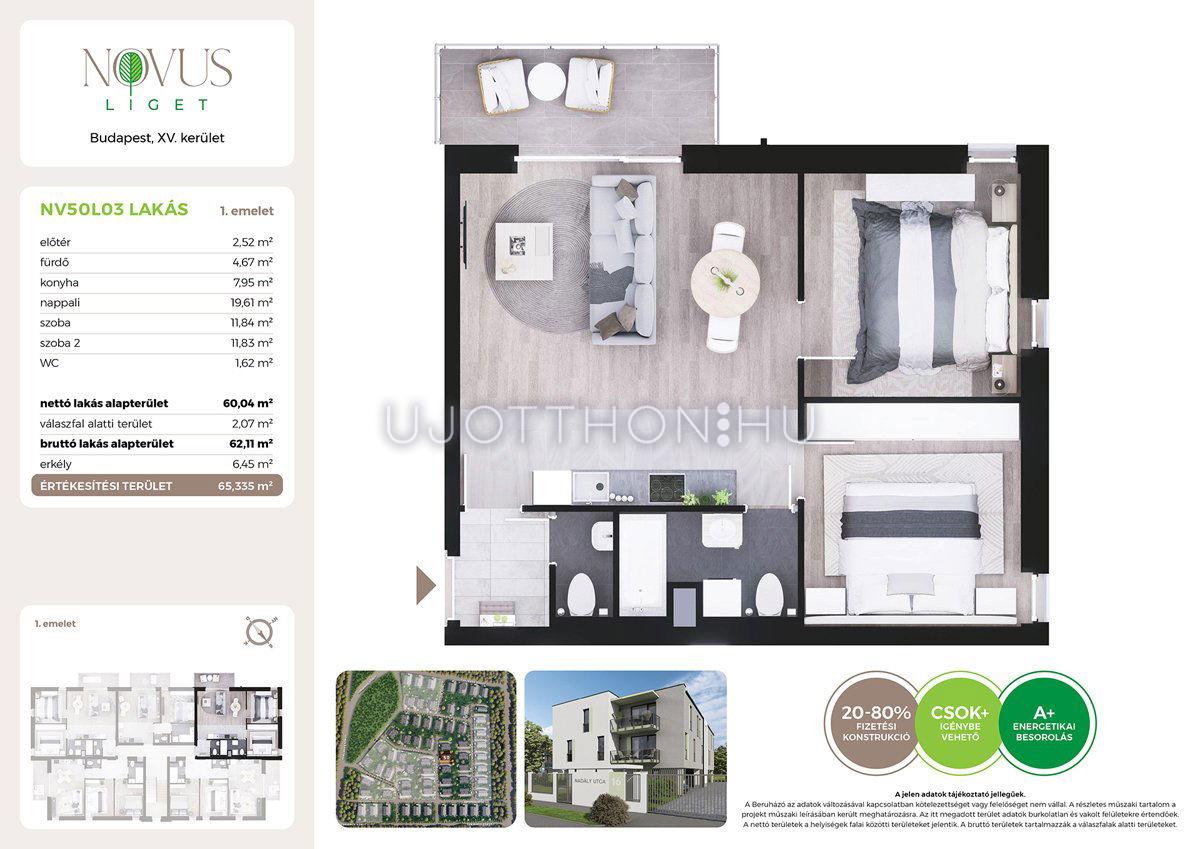 3 szobás 60 m2-es Lakás Novus Liget - Budapest XV. kerület, Rákospalota, Kékszilva utca 2