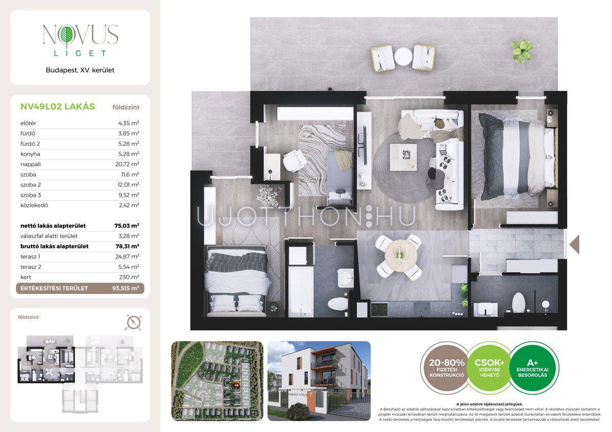 A Novus Liget Budapest 15. kerületének legújabb, modern lakóparkja, amelyet a fenntarthatóság és az élhető környezet jegyében álmodtak meg. A lakóparkban 40 társasház épül, összesen több mint 400, 2, 3 és 4 szobás lakással, amelyek tágas belső tereikkel, kertkapcsolattal vagy terasszal kínálnak kényelmet és nyugalmat. Az A+ energetikai besorolású épületek hőszivattyús rendszerrel és korszerű szigeteléssel készülnek, biztosítva az alacsony fenntartási költségeket és a környezetbarát megoldásokat.