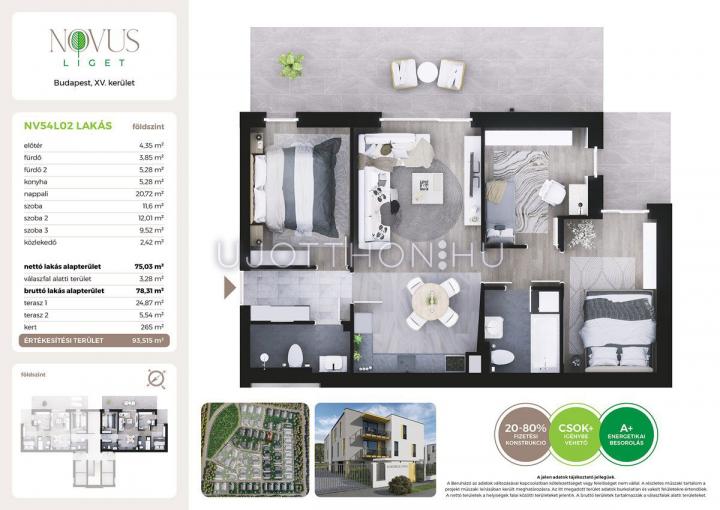 A Novus Liget Budapest 15. kerületének legújabb, modern lakóparkja, amelyet a fenntarthatóság és az élhető környezet jegyében álmodtak meg. A lakóparkban 40 társasház épül, összesen több mint 400, 2, 3 és 4 szobás lakással, amelyek tágas belső tereikkel, kertkapcsolattal vagy terasszal kínálnak kényelmet és nyugalmat. Az A+ energetikai besorolású épületek hőszivattyús rendszerrel és korszerű szigeteléssel készülnek, biztosítva az alacsony fenntartási költségeket és a környezetbarát megoldásokat.