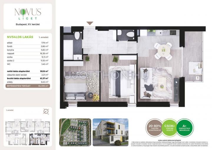 3 szobás 59 m2-es Lakás Novus Liget - Budapest XV. kerület, Rákospalota, Kékszilva utca 2