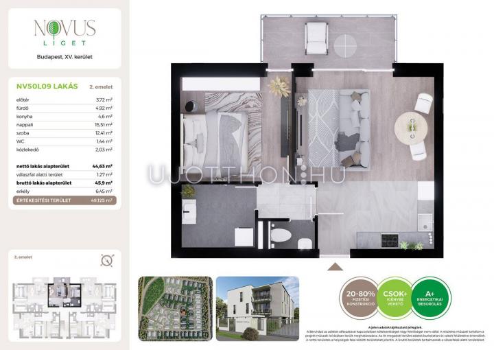 2 szobás 45 m2-es Lakás Novus Liget - Budapest XV. kerület, Rákospalota, Kékszilva utca 2