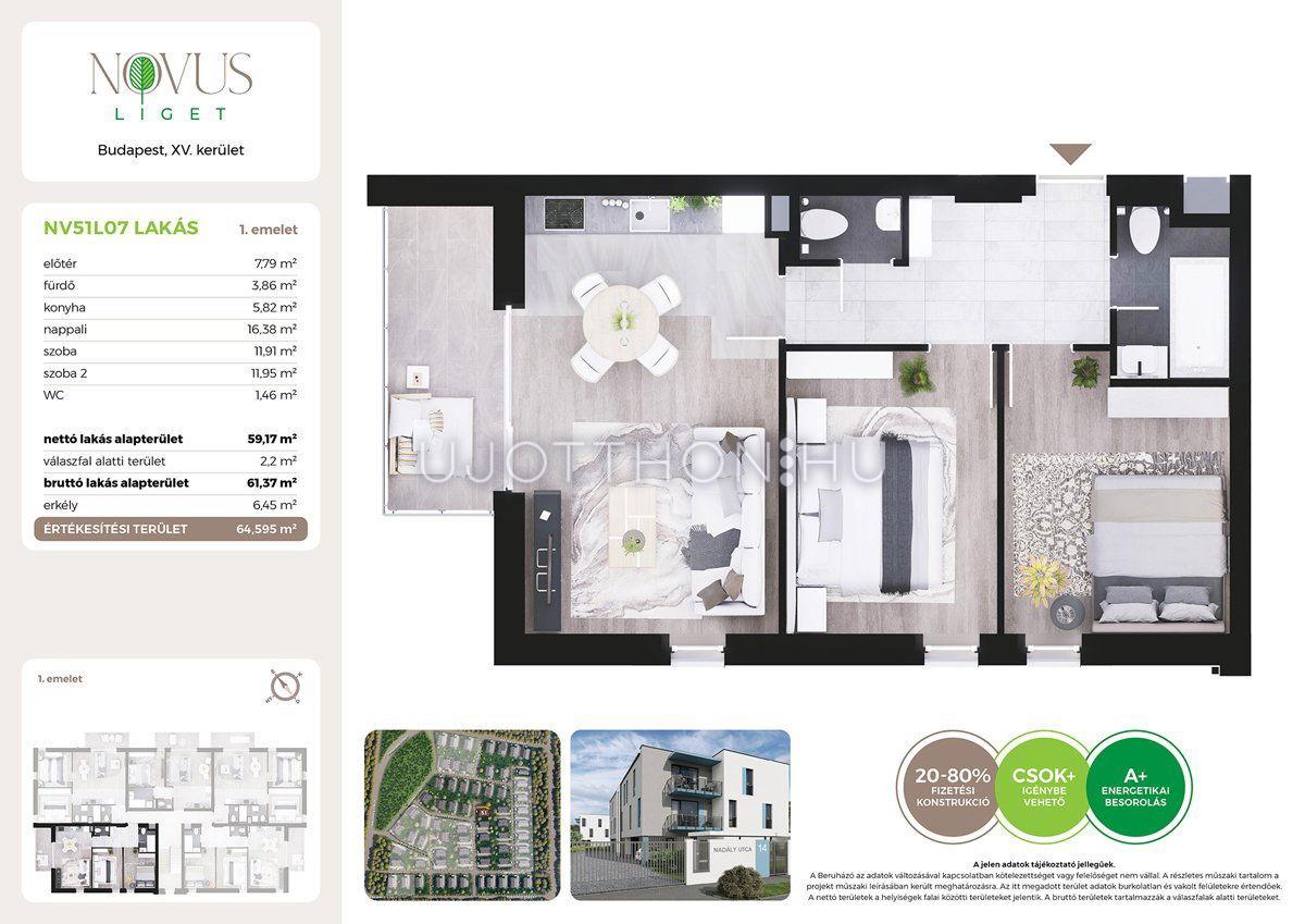 3 szobás 59 m2-es Lakás Novus Liget - Budapest XV. kerület, Rákospalota, Kékszilva utca 2