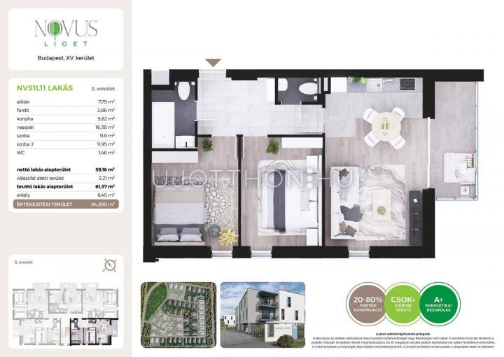 3 szobás 59 m2-es Lakás Novus Liget - Budapest XV. kerület, Rákospalota, Kékszilva utca 2