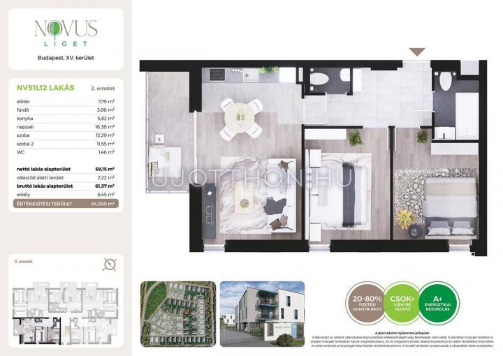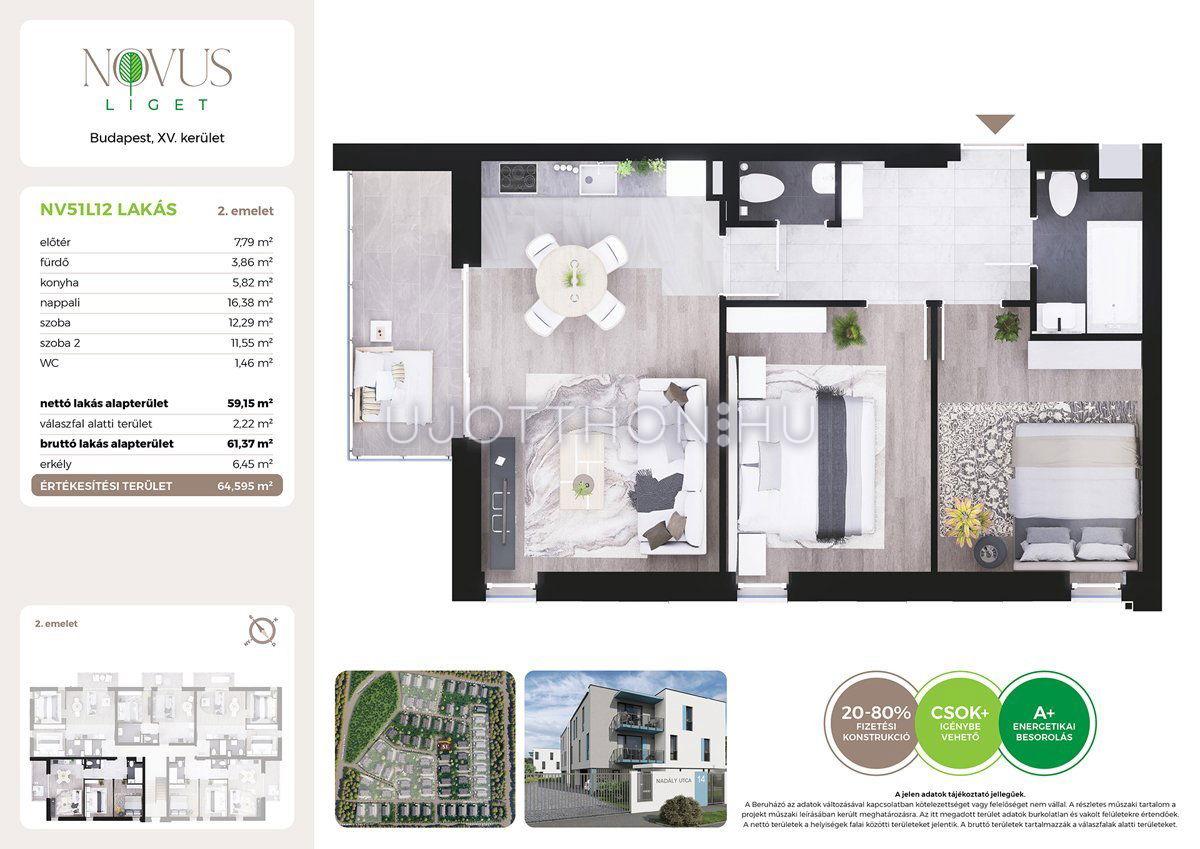 3 szobás 59 m2-es Lakás Novus Liget - Budapest XV. kerület, Rákospalota, Kékszilva utca 2
