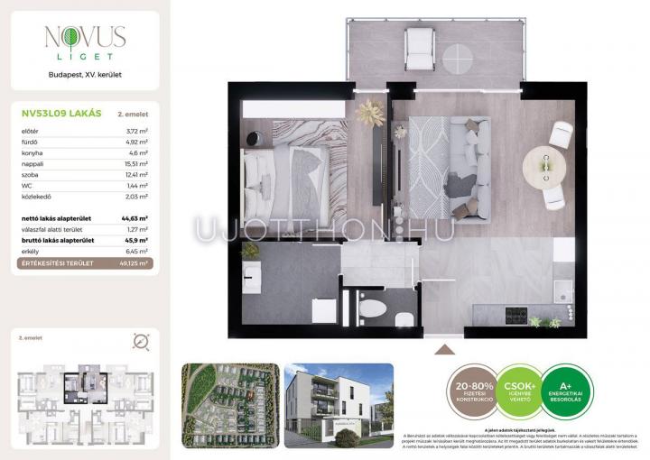 2 szobás 28 m2-es Lakás Novus Liget - Budapest XV. kerület, Rákospalota, Kékszilva utca 2