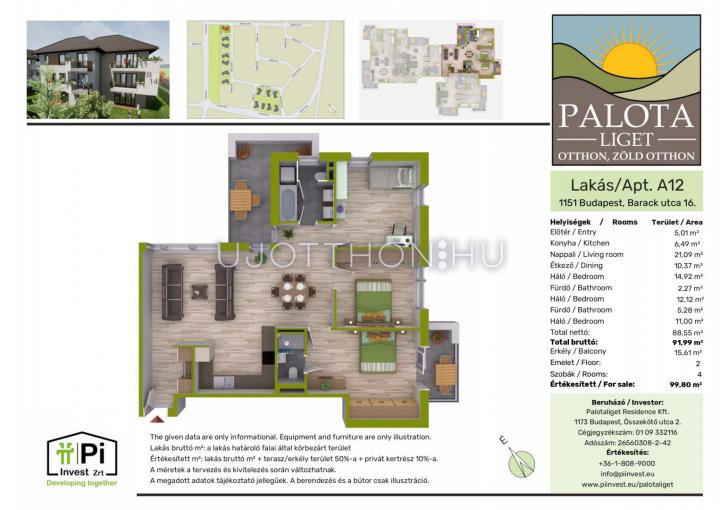 3 + 1 félszobás 92 m2-es Lakás Palota Liget - Budapest XV. kerület, Barack utca 16