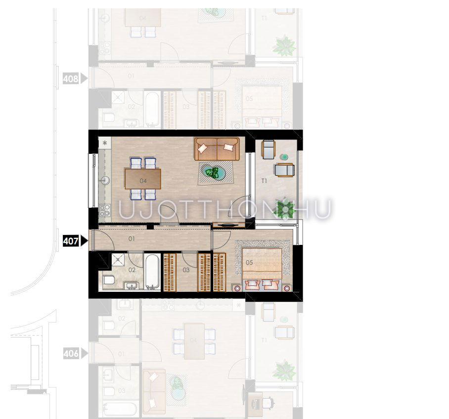 Az első ütemben 102 lakás kerül átadásra, a változatos alaprajzoknak köszönhetően mindenki megtalálhatja a számára ideális otthont – a kompakt 2 szobástól a tágas, több hálószobás családi lakásokig. Szinte minden lakáshoz erkély vagy loggia tartozik, az épületekhez teremgarázs és tárolók is vásárolhatók.