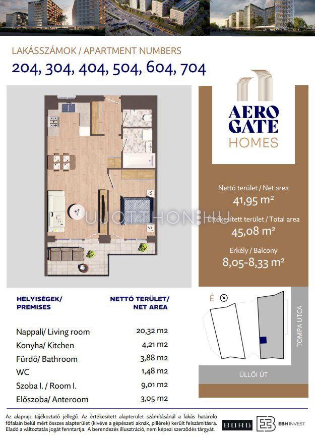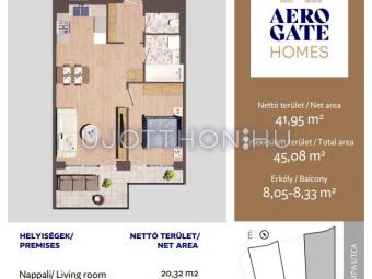2 szobás 45 m2-es Lakás Aerogate Homes - Budapest XIX. kerület, Kispest, Tompa utca 162119/7 hrsz