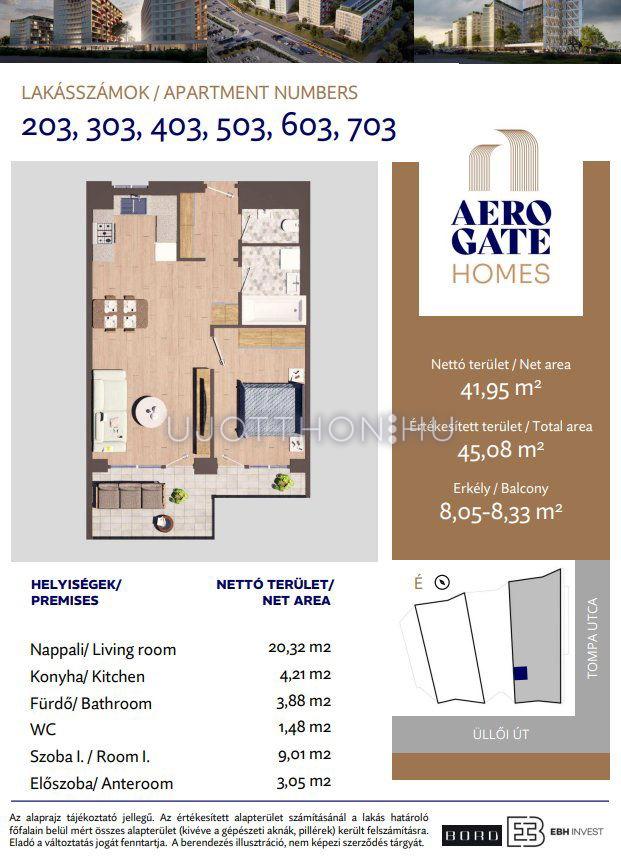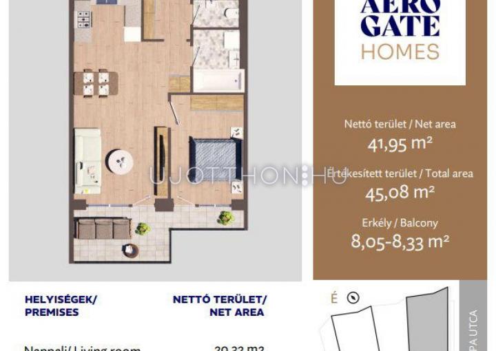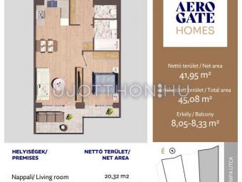 2 szobás 45 m2-es Lakás Aerogate Homes - Budapest XIX. kerület, Kispest, Tompa utca 162119/7 hrsz