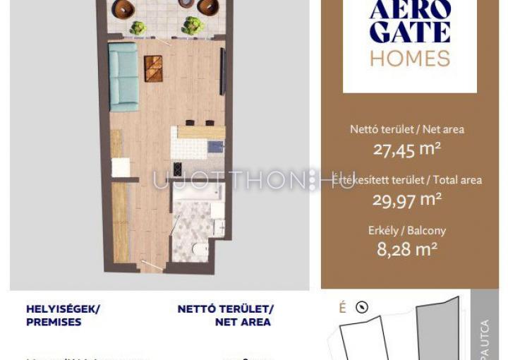 1 szobás 30 m2-es Lakás Aerogate Homes - Budapest XIX. kerület, Kispest, Tompa utca 162119/7 hrsz