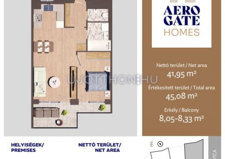 2 szobás 45 m2-es Lakás Aerogate Homes - Budapest XIX. kerület, Kispest, Tompa utca 162119/7 hrsz