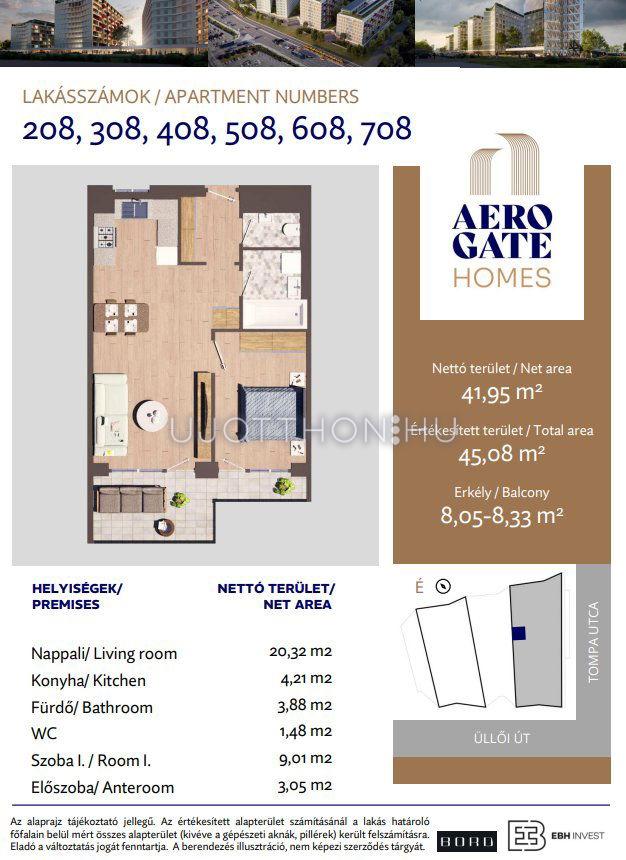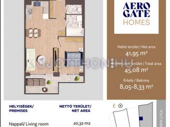 2 szobás 45 m2-es Lakás Aerogate Homes - Budapest XIX. kerület, Kispest, Tompa utca 162119/7 hrsz
