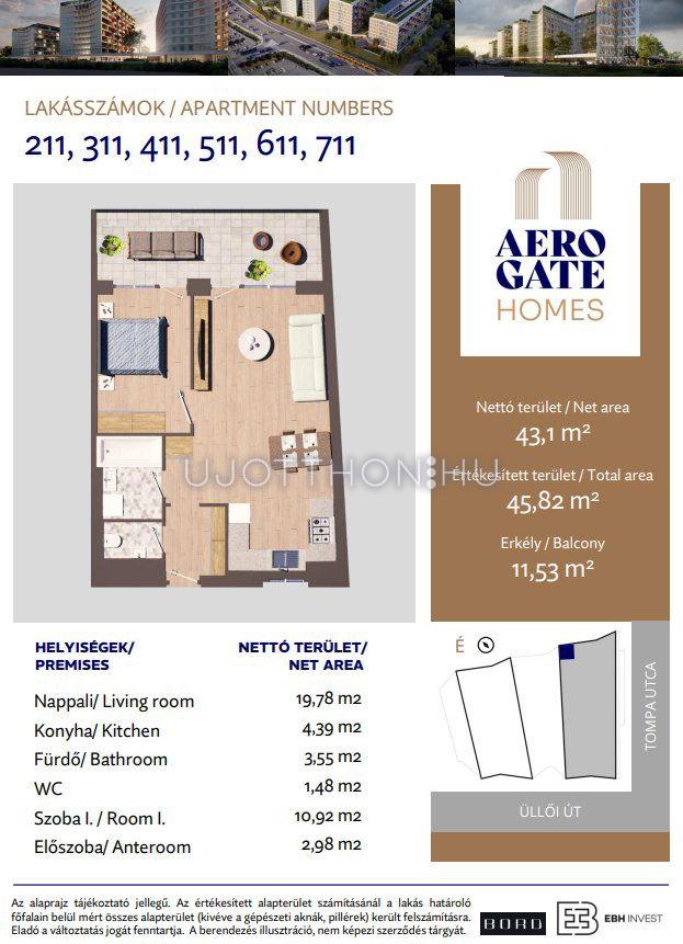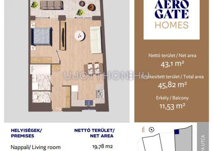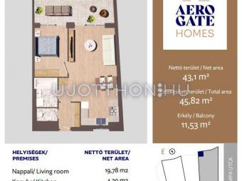 2 szobás 46 m2-es Lakás Aerogate Homes - Budapest XIX. kerület, Kispest, Tompa utca 162119/7 hrsz