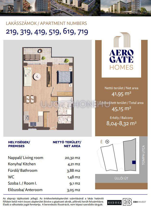 2 szobás 45 m2-es Lakás Aerogate Homes - Budapest XIX. kerület, Kispest, Tompa utca 162119/7 hrsz