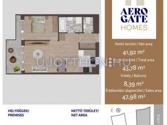 2 szobás 42 m2-es Lakás Aerogate Homes - Budapest XIX. kerület, Kispest, Tompa utca 162119/7 hrsz
