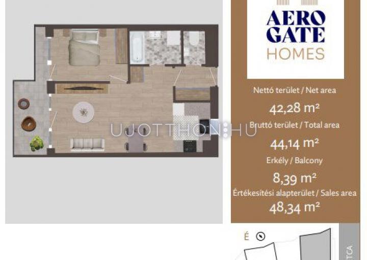 2 szobás 42 m2-es Lakás Aerogate Homes - Budapest XIX. kerület, Kispest, Tompa utca 162119/7 hrsz