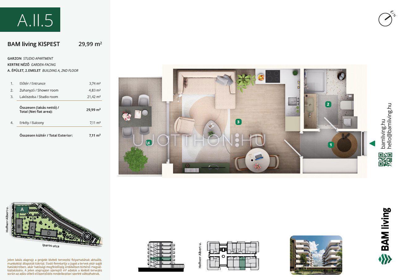 1 szobás 30 m2-es Lakás BAM living Kispest - ahol a nyugalom és a modern városi élet találkozik. - Budapest XIX. kerület, Kispest, Iparos utca 2