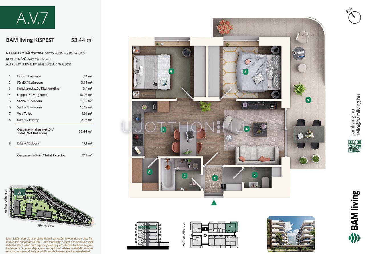 3 szobás 53 m2-es Lakás BAM living Kispest - ahol a nyugalom és a modern városi élet találkozik. - Budapest XIX. kerület, Kispest, Iparos utca 2