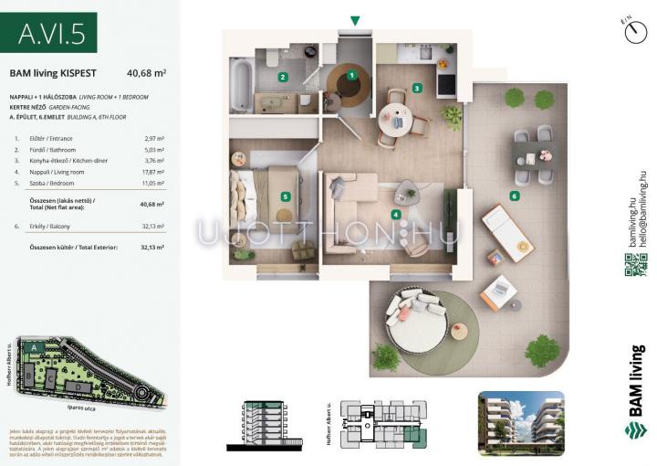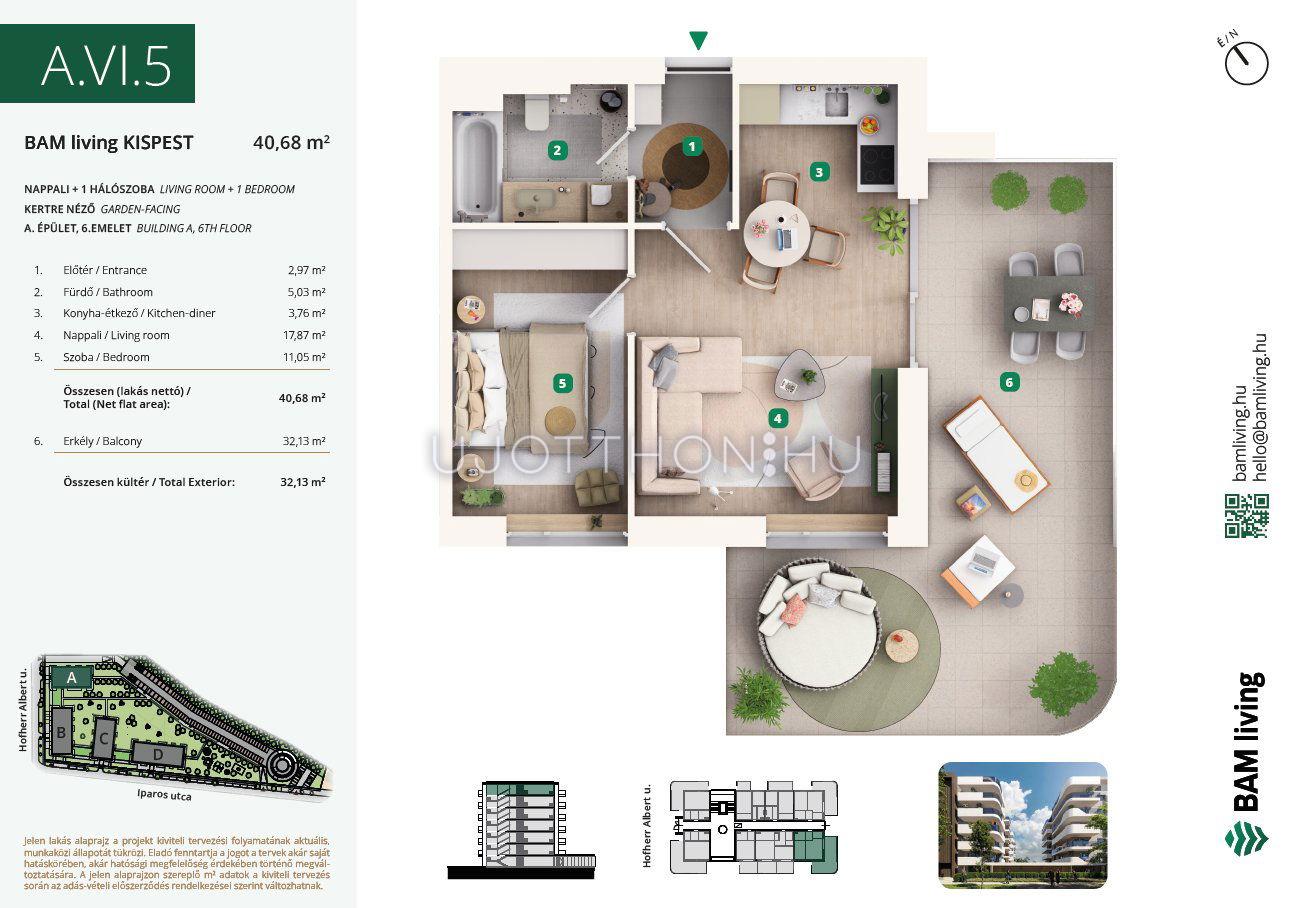 2 szobás 41 m2-es Lakás BAM living Kispest - ahol a nyugalom és a modern városi élet találkozik. - Budapest XIX. kerület, Kispest, Iparos utca 2