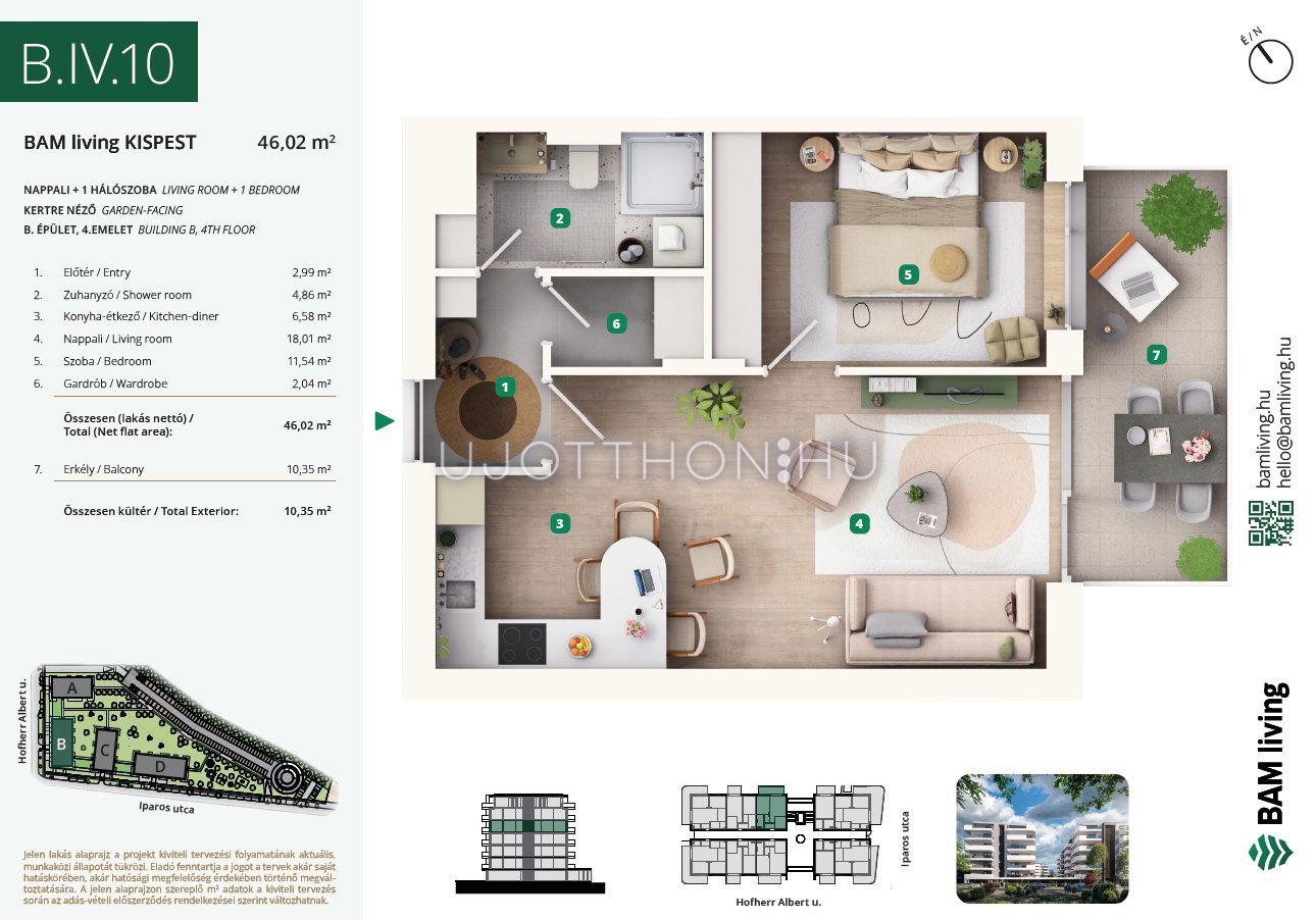 2 szobás 51 m2-es Lakás BAM living Kispest - ahol a nyugalom és a modern városi élet találkozik. - Budapest XIX. kerület, Kispest, Iparos utca 2