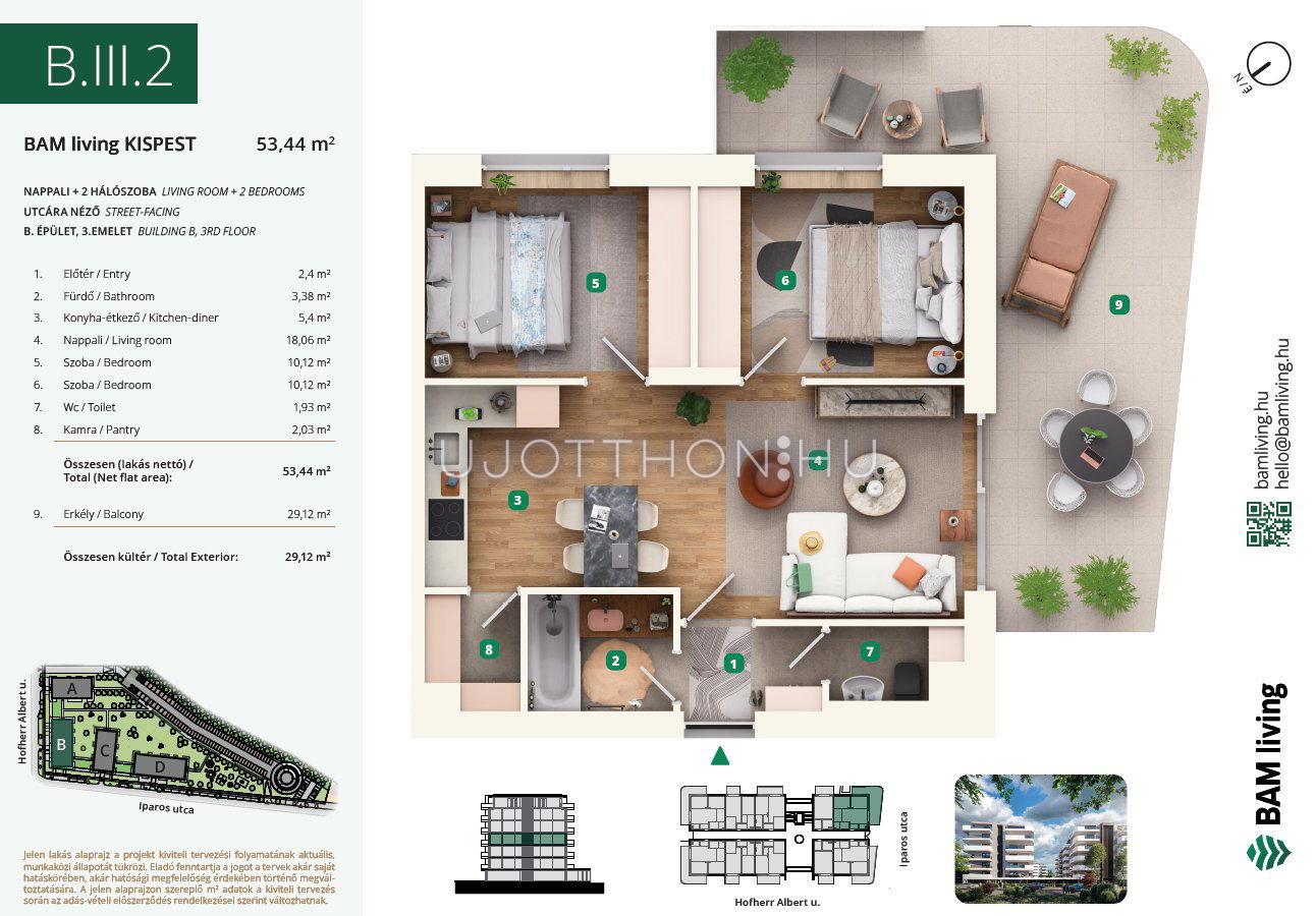 3 szobás 68 m2-es Lakás BAM living Kispest - ahol a nyugalom és a modern városi élet találkozik. - Budapest XIX. kerület, Kispest, Iparos utca 2