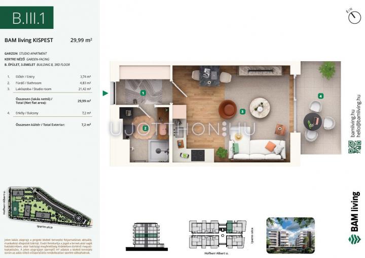 1 szobás 34 m2-es Lakás BAM living Kispest - ahol a nyugalom és a modern városi élet találkozik. - Budapest XIX. kerület, Kispest, Iparos utca 2