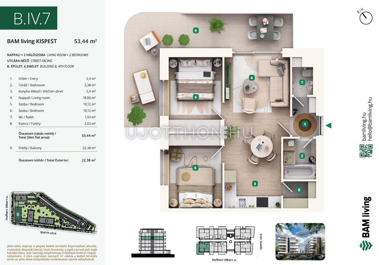 3 szobás 65 m2-es Lakás BAM living Kispest - ahol a nyugalom és a modern városi élet találkozik. - Budapest XIX. kerület, Kispest, Iparos utca 2