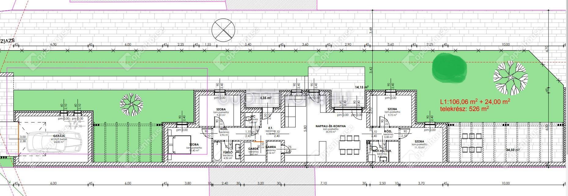 - 1. HÁZ: 106,06 M2-ES lakótér, 526 m2-es saját kerttel,
