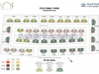 A STAY FAMILY PARK lakásai egyedülállóak a település lakáspiacán, mert az otthonokhoz parkosított előkert és privát hátsókert is tartozik, tárolóval és (fedett) gépkocsibeállóval.