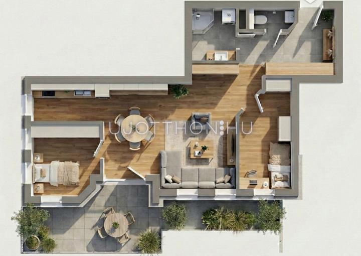 A lakások teljesen egyedi igények alapján is készülhetnek, akár alaprajzi módosításra is van lehetőség.