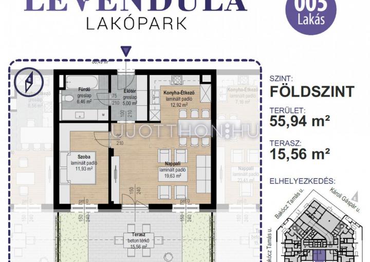 2 szobás 56 m2-es Lakás LEVENDULA lakópark - Kecskemét, Kossuth-város, Bakócz Tamás utca 1