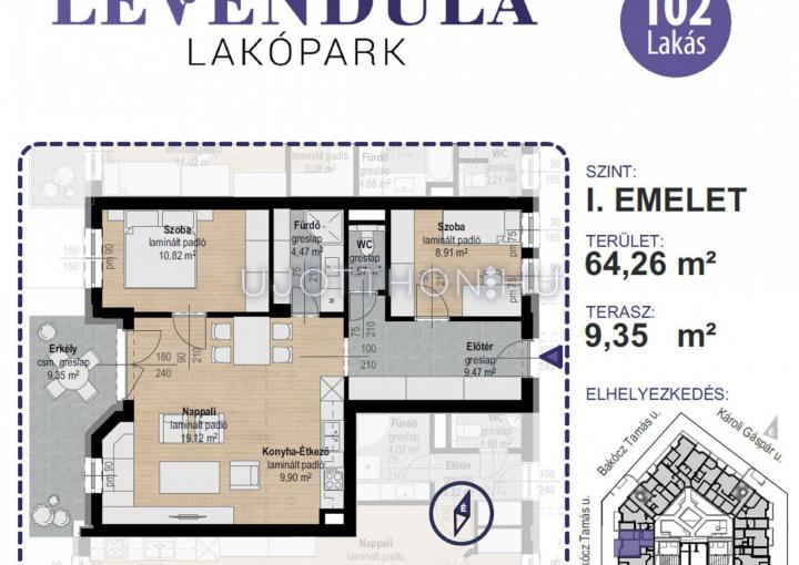 3 szobás 65 m2-es Lakás LEVENDULA lakópark - Kecskemét, Kossuth-város, Bakócz Tamás utca 1