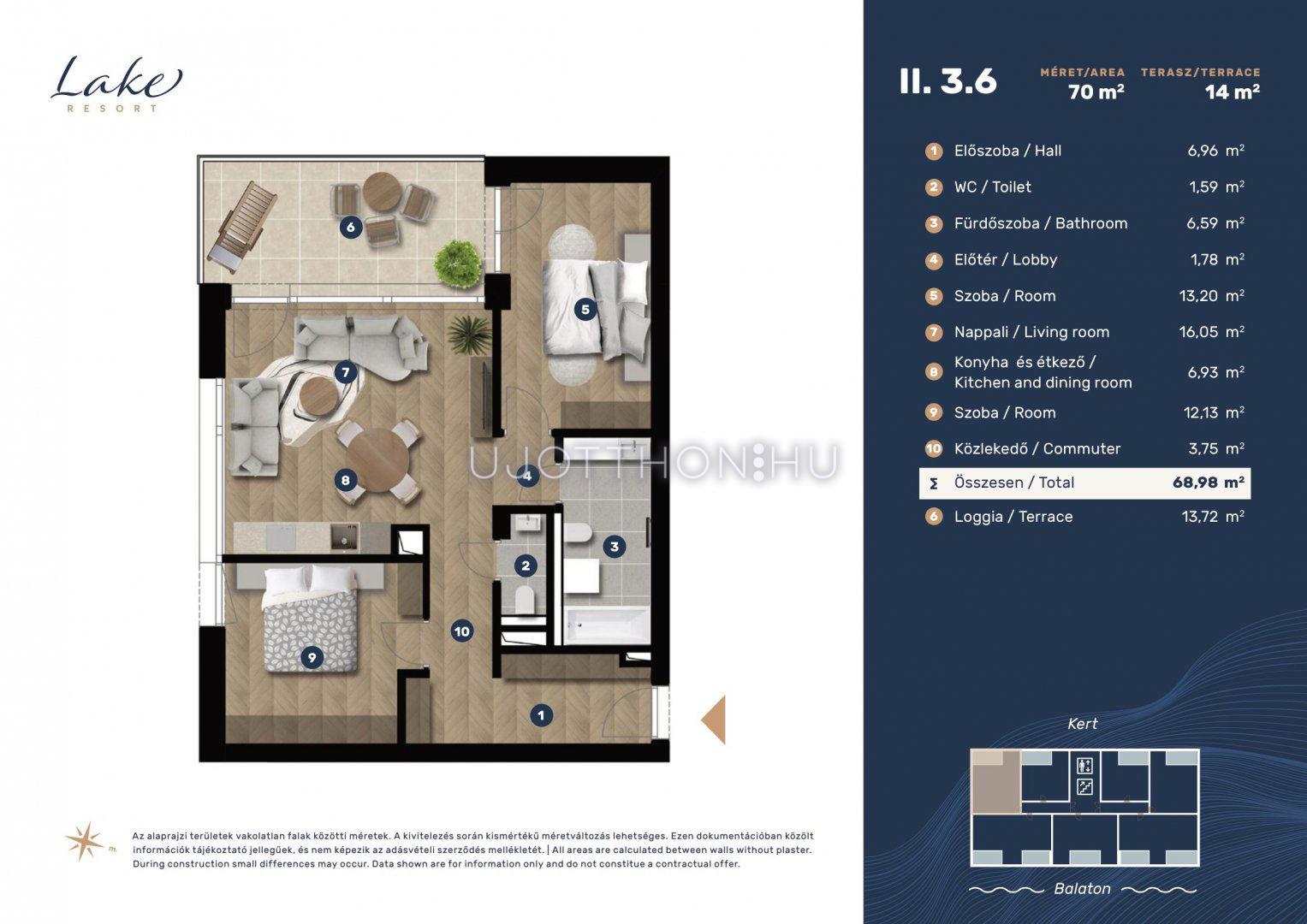 3 szobás 76 m2-es Lakás Lake Resort Keszthely - Keszthely, Entz Géza sétány 11-13