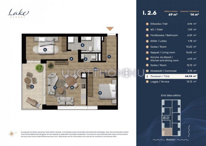 3 szobás 76 m2-es Lakás Lake Resort Keszthely - Keszthely, Entz Géza sétány 11-13