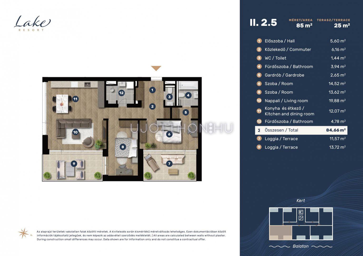 Keszthelyen, közvetlenül a Balaton parton modern formai világban megálmodott egyedileg tervezett 5 társasházból álló 120 vegyes rendeltetésű lakásos ingatlan épül, magas minőségben minden követelménynek megfelelve. Olyan 21. századi műszaki technikával ellátott alacsony fenntartási költségű, AA+ energetikai besorolású, földhőszondás, napelemes okos otthonokat kínálunk, melyek gondoskodnak a családok és az első osztályú életre vágyók kényelméről. Legyen az Ön örökpanorámás otthona, nyaralója vagy akár értékálló befektetése a Lake Resort egyik lakó ingatlana.