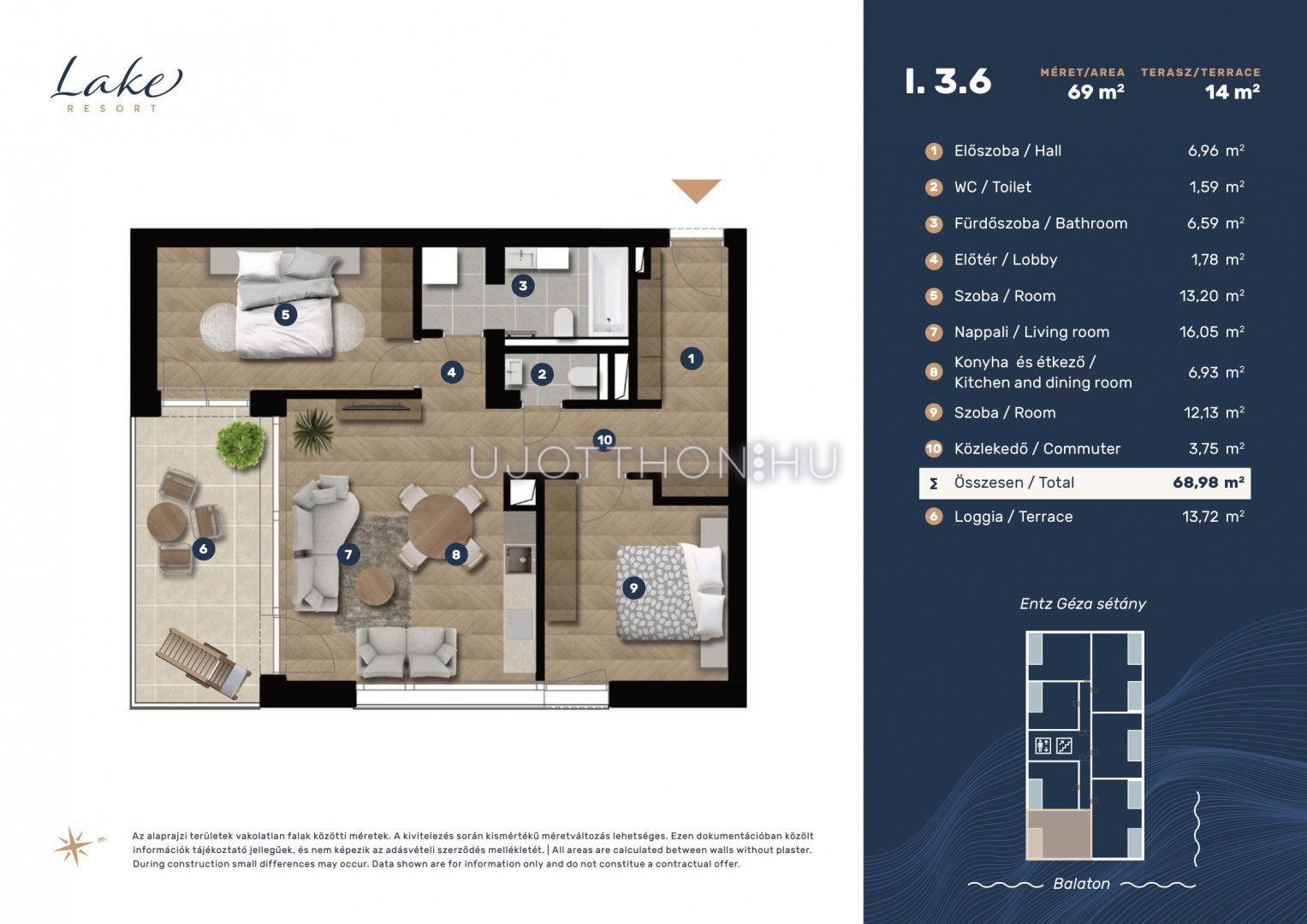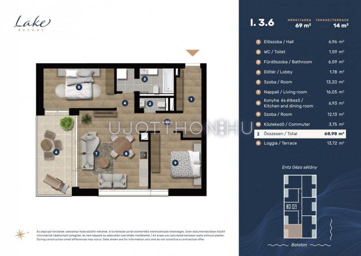 3 szobás 76 m2-es Lakás Lake Resort Keszthely - Keszthely, Entz Géza sétány 11-13
