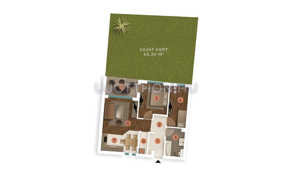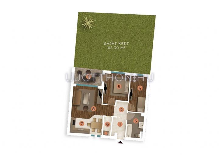 A kiemelkedő minőségben épülő lakások mindegyike örök panorámás. A lakások egyedileg alakíthatók. A földszinti apartmanokhoz ajándék saját kert, az emeletiekhez terasz tartozik.