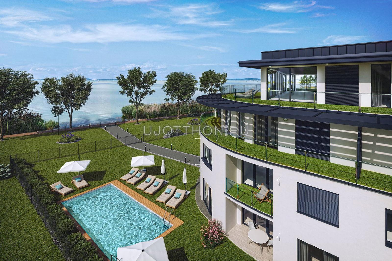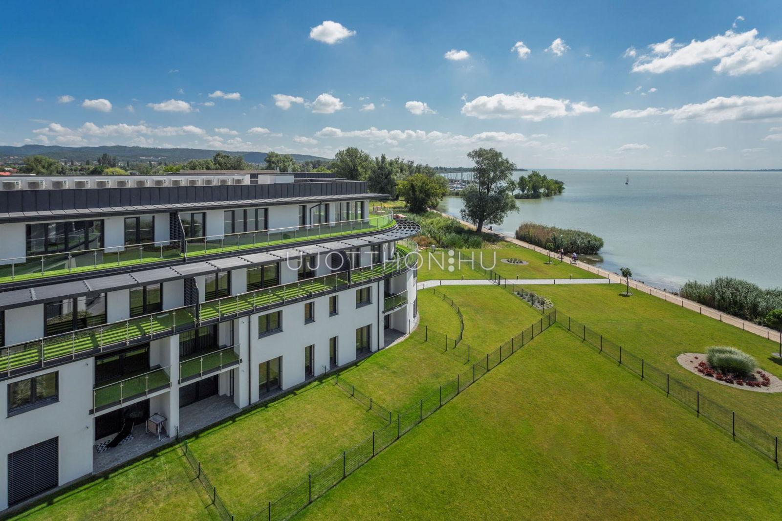 A Balaton parti elhelyezkedés mellett az épület különlegessége, a földszinten elhelyezkedő, belsőépítész által tervezett wellness. A kertben medence, az épület tetején szolár zuhanyos napozóterasz várja az új lakókat.