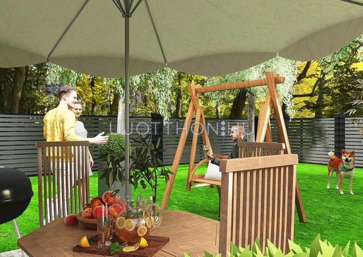 • Saját kerthasználat átlátást gátló 180cm magas kerítéssel