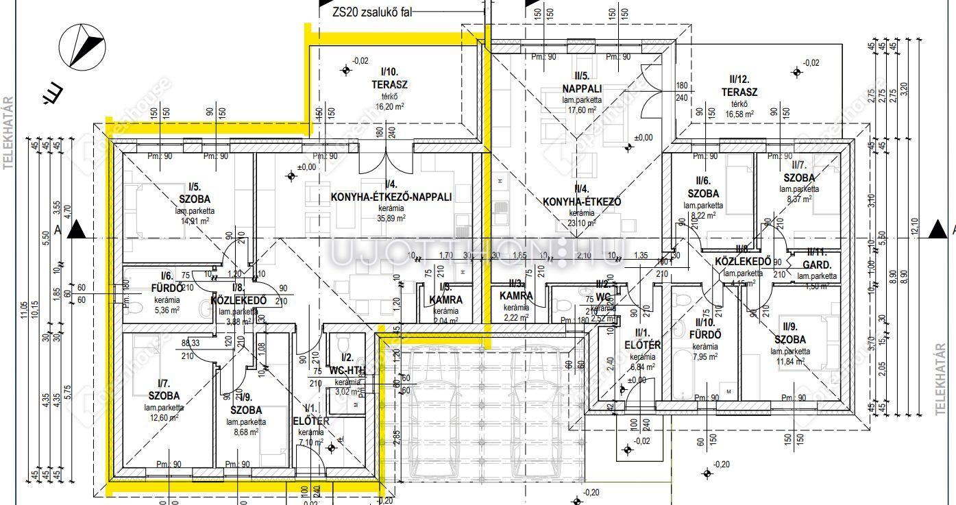 - 1. ÉPÜLET: 93,48 M2 NETTÓ LAKÓTÉR + 16,20 M2-ES TERASZ + 18 NM-ES KOCSIBEÁLLÓ