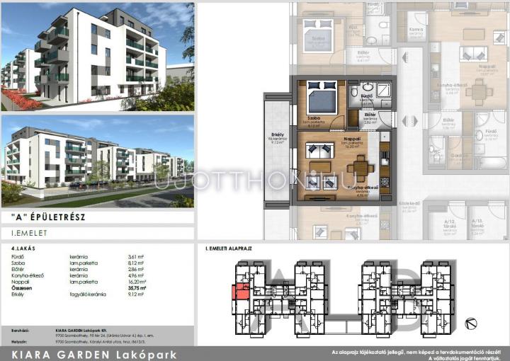 2 szobás 36 m2-es Lakás Kiara Garden Lakópark Szombathely - Szombathely, Károlyi Antal utca