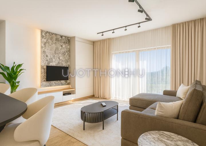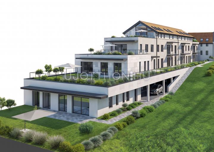 Exkluzív megjelenésével, az átlagosnál lényegesen magasabb műszaki tartalommal, kényelmi funkciókkal, a sok zöldtetővel, örök panorámával kiemelkedik az épülő ingatlanok között!
