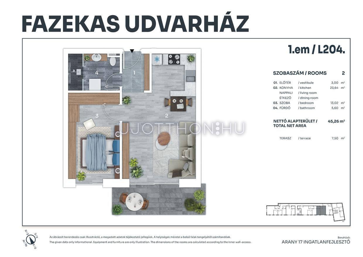 2 szobás 45 m2-es Lakás Fazekas Udvarház - Tata, Fazekas utca 25