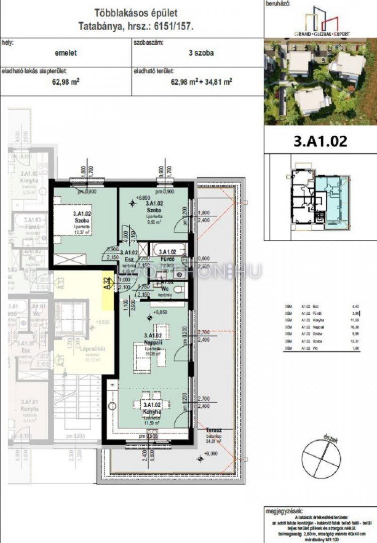 3 szobás 63 m2-es Lakás Liget Lakópark - Tatabánya, Kertváros, Alkotmány utca 1/A