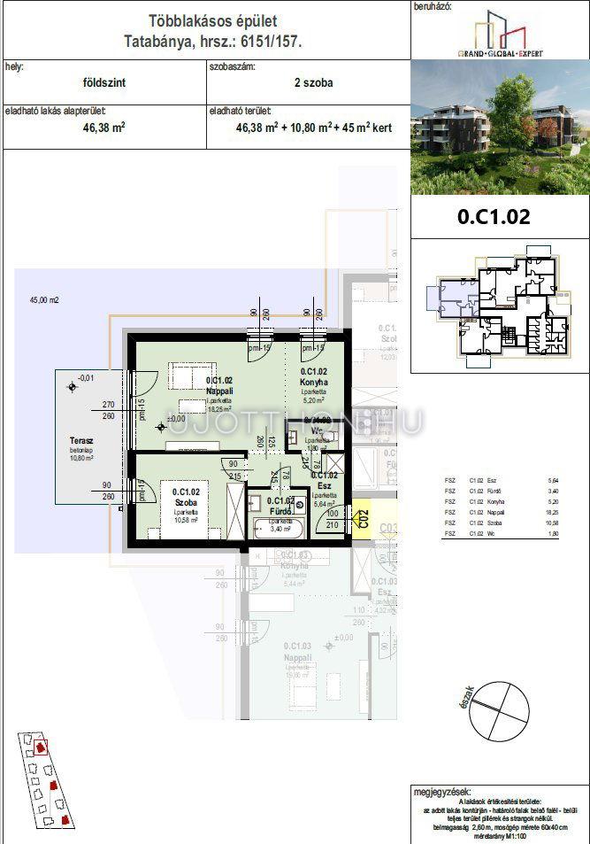2 szobás 46 m2-es Lakás Liget Lakópark - Tatabánya, Kertváros, Alkotmány utca 1/A
