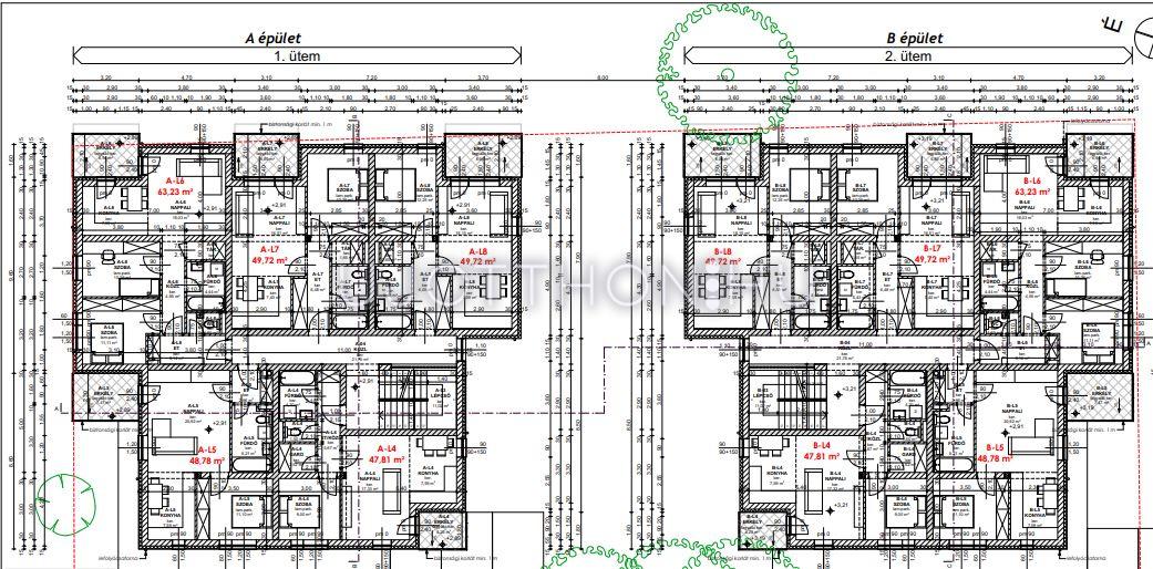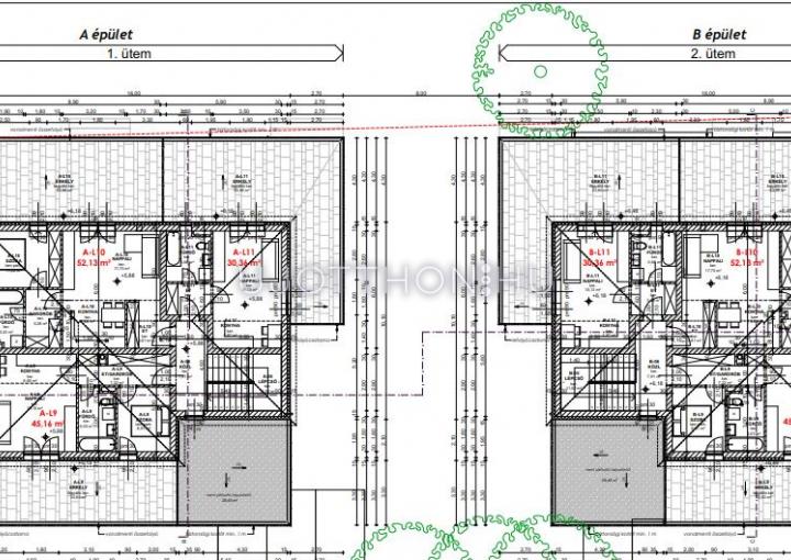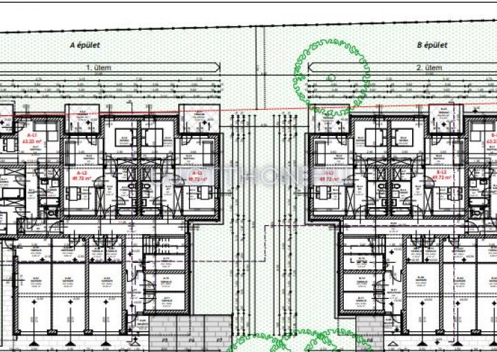 A telekre 2 db épület lett tervezve, melynek alaprajzi kialakítása megegyező, kivitelezése 2 ütemben tervezett.