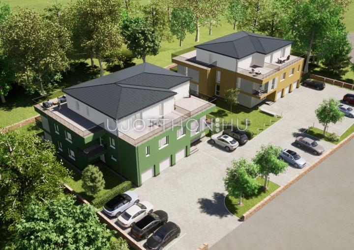 Összesen 12-12 db lakás kerül kialakításra az épületekben, a parkoláshoz 2db garázs és 24 db felszíni parkoló készül.