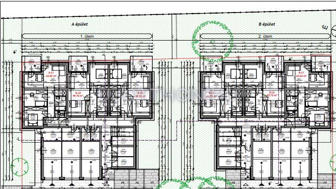 A telekre 2 db épület lett tervezve, melynek alaprajzi kialakítása megegyező, kivitelezése 2 ütemben tervezett.