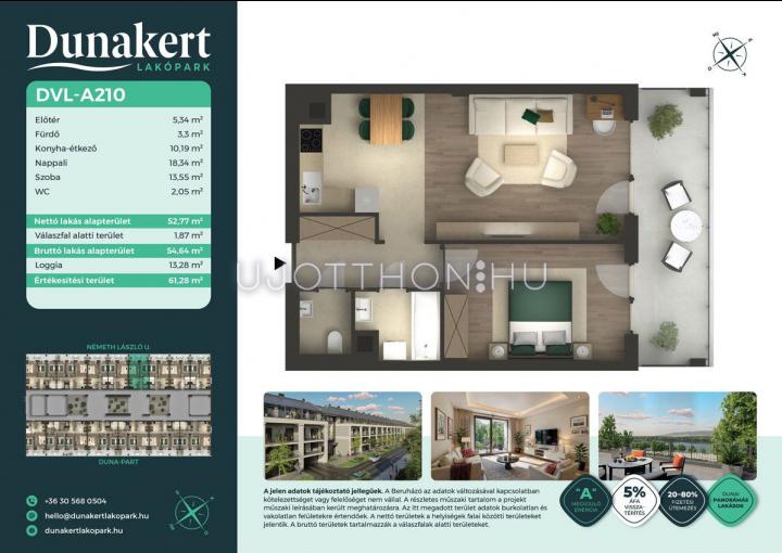 2 szobás 53 m2-es Lakás Dunakert - Vác, Kisvác-Iskolaváros, Németh László utca